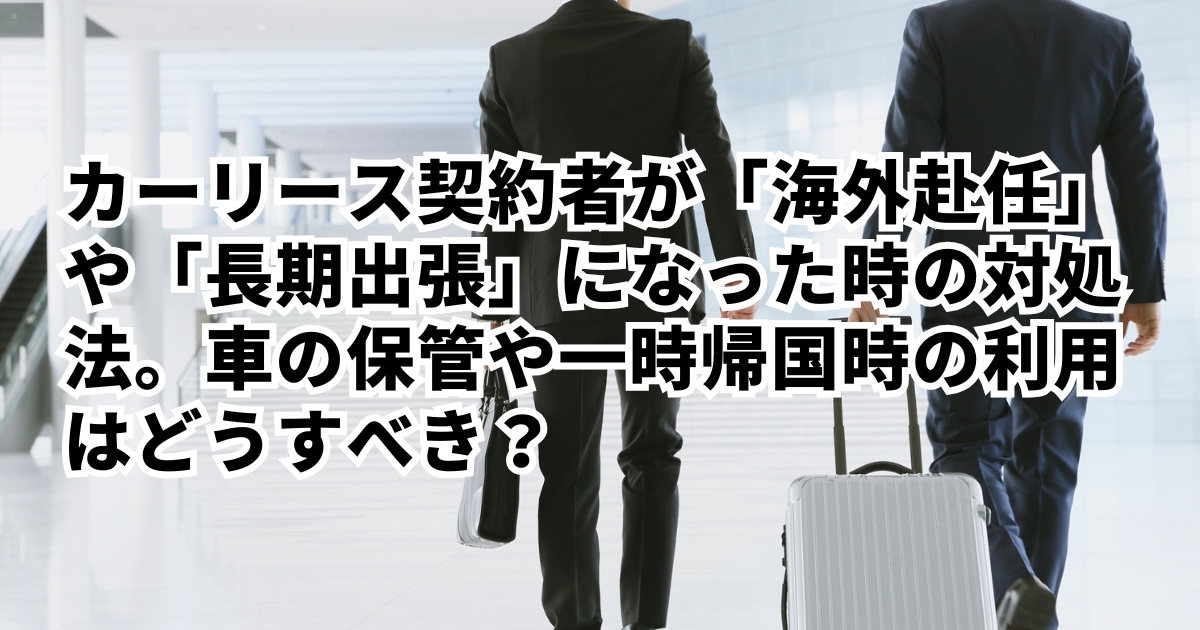 突然の海外赴任や数ヶ月に及ぶ長期出張。キャリアにおける大きなチャンスである一方で、日常生活の整理には多大な労力を要します。特に頭を悩ませるのが、現在契約している「カーリース」の扱いです。車は持っているだけで駐車場代や税金が発生し、長期間放置すればバッテリー上がりや故障のリスクも高まります。「海外に行っている間もリース料を払い続けるべきか」「解約すると高額な違約金がかかるのではないか」といった不安は、赴任準備の大きなストレスになり得ます。海外赴任や長期出張が決まった際の現実的な対処法を整理しました。解約の判断基準から、家族に預ける際の手順、さらには一時帰国時に車を安全に使うための管理方法まで、最適な選択をするための情報を詳しく解説します。