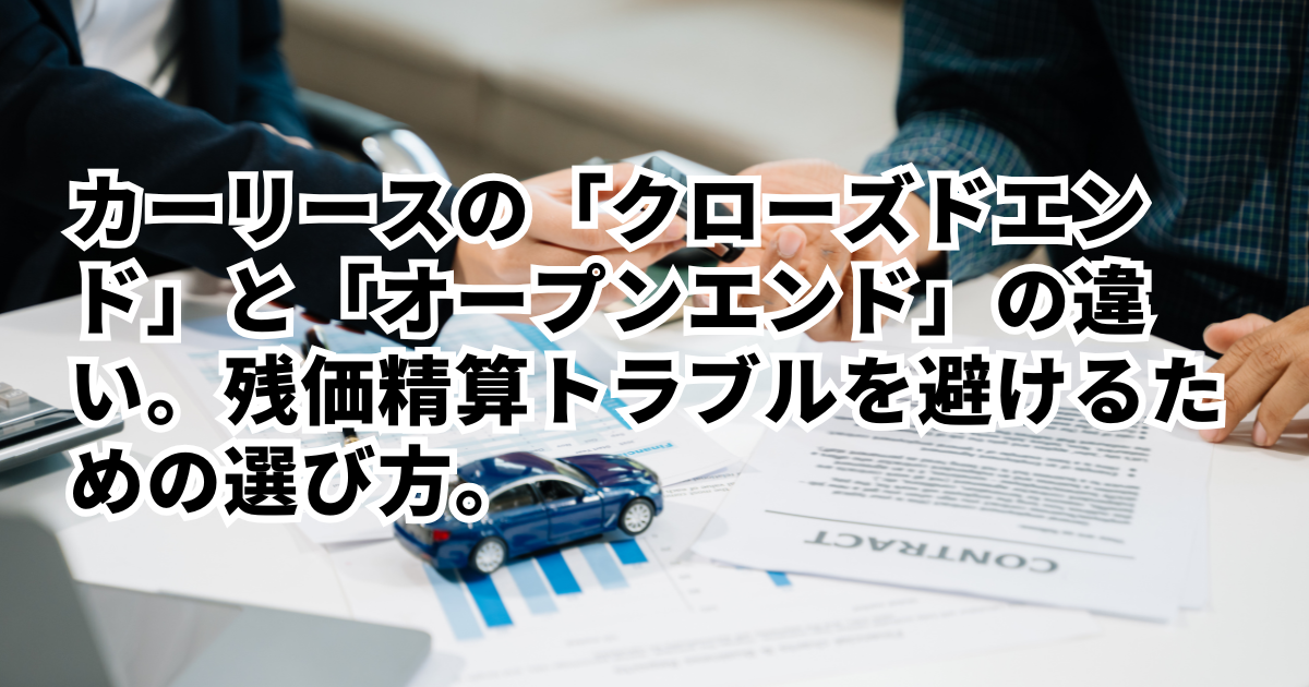 カーリースを検討する際、月々の支払額と同じくらい重要なのが「契約方式」の選択です。多くのリース会社で採用されている「クローズドエンド」と「オープンエンド」という2つの方式。名前だけ聞くと難しく感じますが、これを知らずに契約してしまうと、数年後の契約満了時に「予想外の追加支払い」が発生し、大きなトラブルに発展するリスクがあります。「月額料金が安いから」という理由だけで選ぶのではなく、将来的な清算リスクを誰が負うのかを正しく理解することが、賢いリース選びの絶対条件です。本記事では、2つの方式の仕組みの違いから、メリット・デメリット、そしてトラブルを未然に防ぐための具体的なチェックポイントまでを詳しく解説します。
