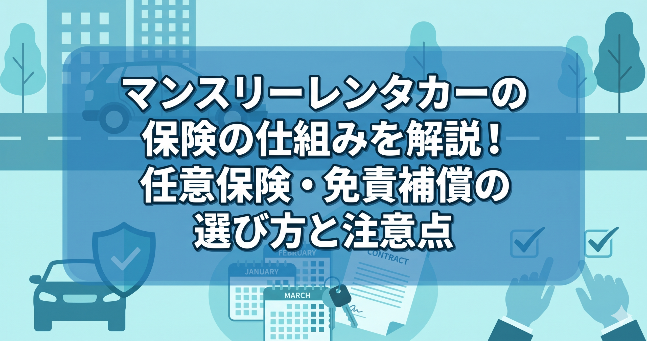 マンスリーレンタカー(長期レンタカー)を検討している方の中には、「万が一事故を起こしたときの保険はどうなっているの?」と不安を感じる方も多いのではないでしょうか。レンタカーには基本的な保険が付いていると聞いてはいるものの、具体的にどんな補償があるのか、免責補償とは何か、追加の保険は必要なのかなど、疑問点は多いものです。この記事では、マンスリーレンタカーに含まれる保険の仕組みから、免責補償の種類・選び方、長期利用ならではの注意点まで、初めての方でもわかりやすく解説します。